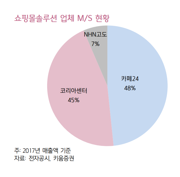 온라인쇼핑몰을 창업하도록 지원해주는 플랫폼 카페24, 코리아센터, NHN고도 상위 3사 역시 독점이라고 볼 수 있습니다.