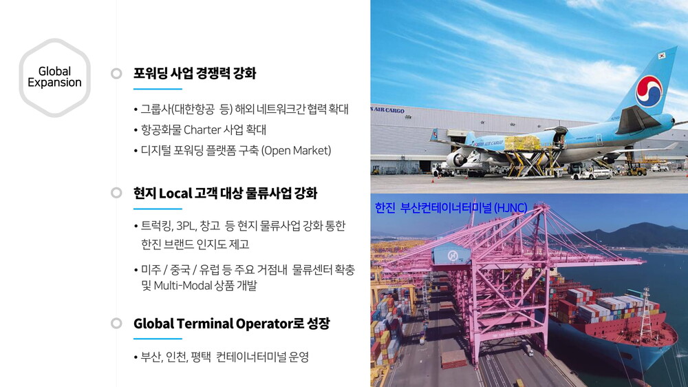 또한 국내에서만 머무르고 있었던 물류사업을 현지 Local고객을 대상으로 트럭킹이나 3PL, 창고사업 등을 현지에서 사업을 함으로서 한진 브랜드 인지도를 제고하도록 하겠습니다.