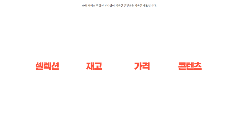 첫째, 셀렉션(Selection), 둘째, 재고(Inventory), 셋째, 낮은 가격(Price), 넷째, 콘텐츠(Contents) 확보입니다.
