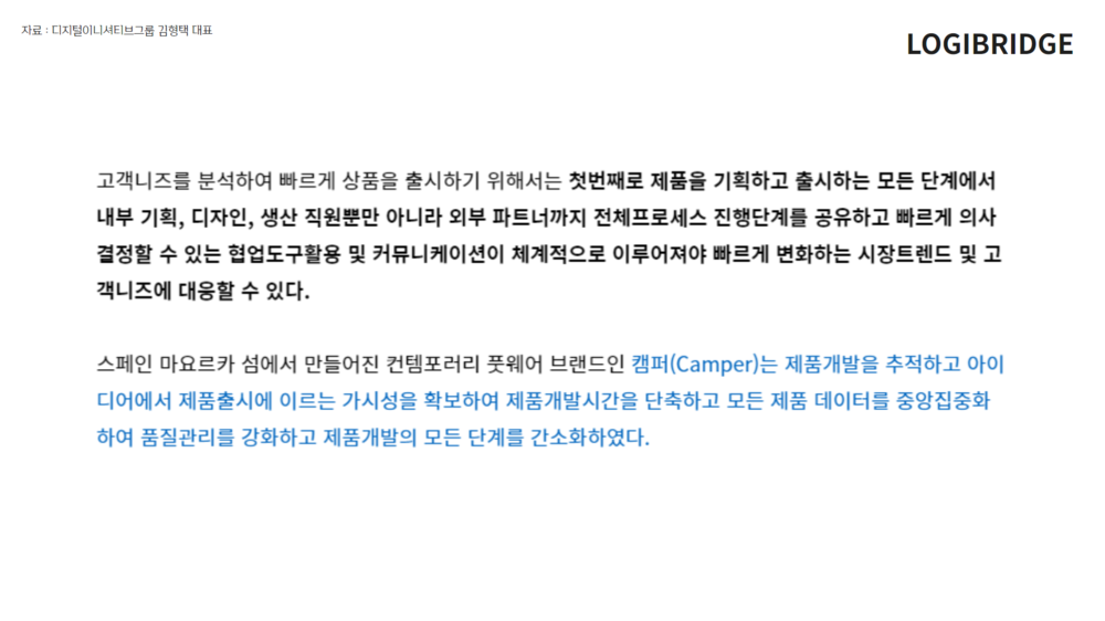 그러한 안일함에 빠졌는데 코로나19로 본격적으로 프런트 뿐 아니라 백엔드에서도 조직부터 시작해서 프로세스 판매하는 방식 또 저희가 이제 기본적 레거시시스템, 물류까지 다 디지털트랜스포메이션을 전략적으로 추진하는 부분들 접근 부분들이 첫 번째 크게 전략적 측면에서 봐야하지 않을까 생각이 들고요.
