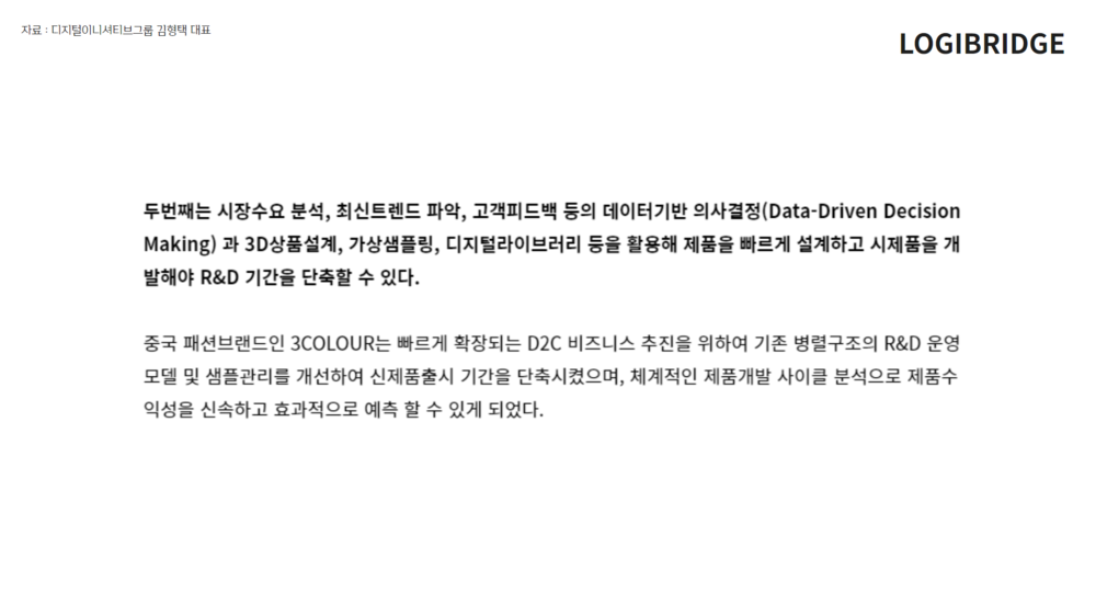 두 번째로 보면 결과적으로 기업들이 가지고 있는 데이터라든지 인프라를 더 확장해서 여러 가지 부분으로 더 확대하는, 거기서 간과했던 물류를 더 확장하는 부분이 있었고요.