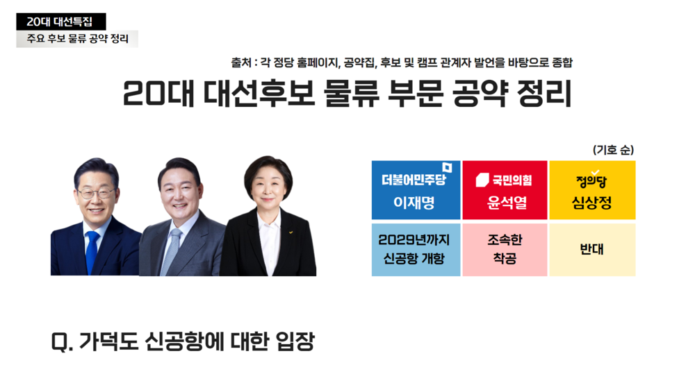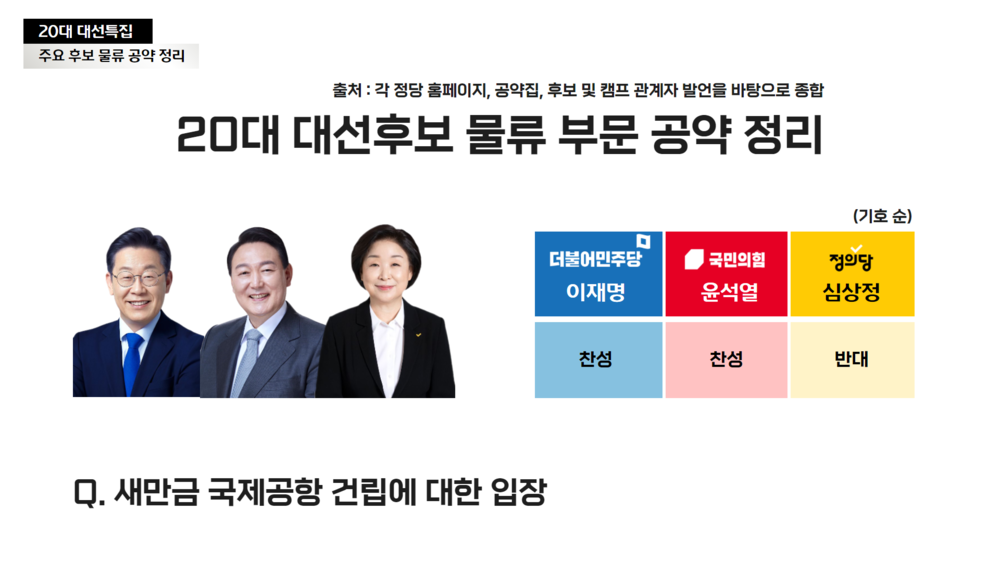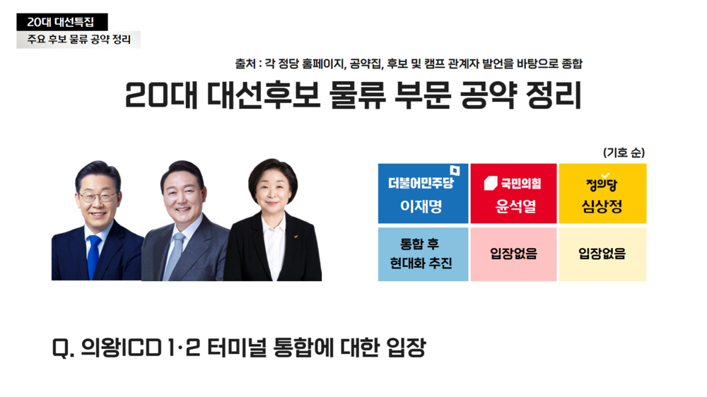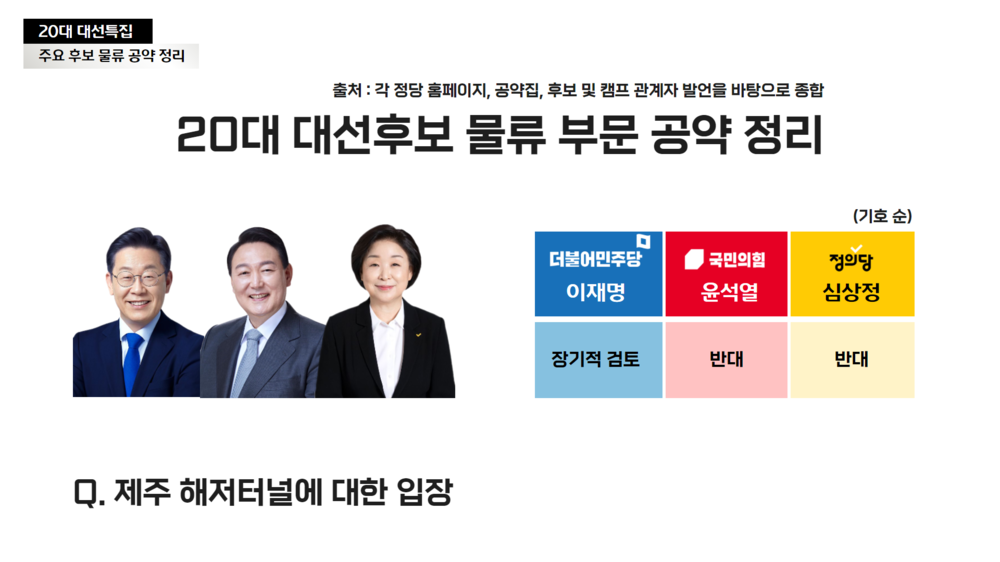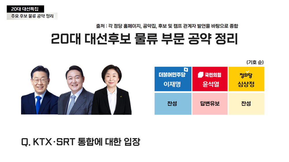 20대 대선후보 물류 부문 공약 정리