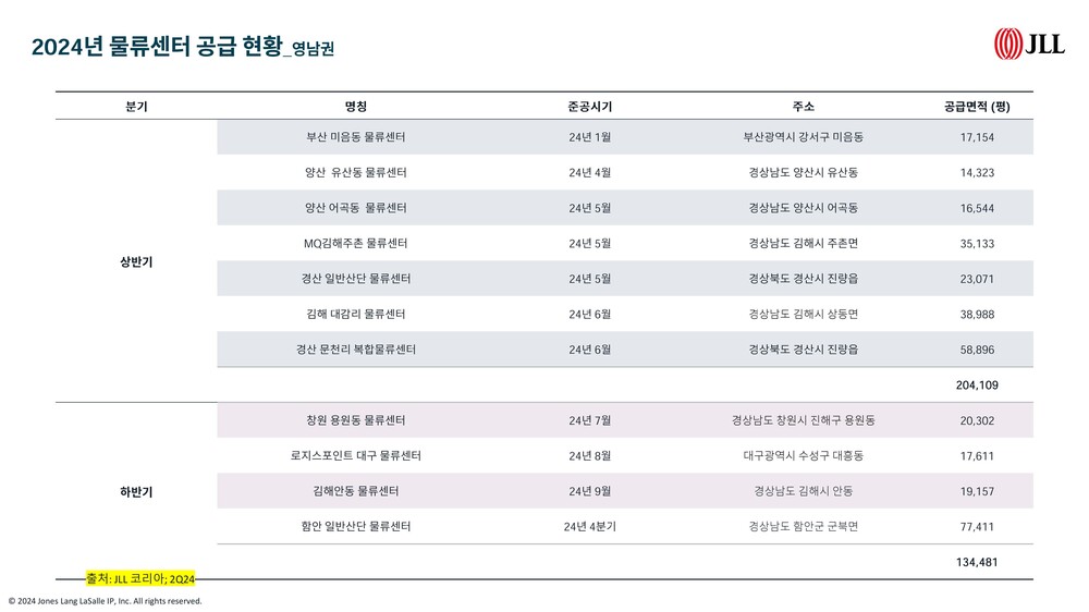 #2024영남권물류부동산 #물류센터공급 #영남권부동산시장 #저온물류센터 #공실률 #물류부동산전망 #영남권물류동향 #부산경남물류 #JLLKorea #물류부동산투자