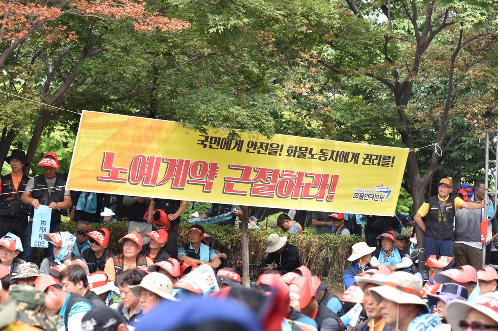 ●구 : 그래서 저는 그 부분이 문제라고 보는 것이 왜 컨테이너와 벌크 시멘트만 하느냐는 거죠. 이 세상에 화물은 다 똑같잖아요. 컨테이너와 벌크시멘트 운송만 어렵고 철강이나 잡화, 골재나 여러 가지 많잖아요. H빔도 있고 철근도 나르고. 그리고 중량물도 하시는 분이 계시잖아요. 변압기라든지. 엄청나게 위험한 것도 많이 나르는데, 굳이 왜 이 두 개만. 납득이 잘 안 돼요 이 부분이.