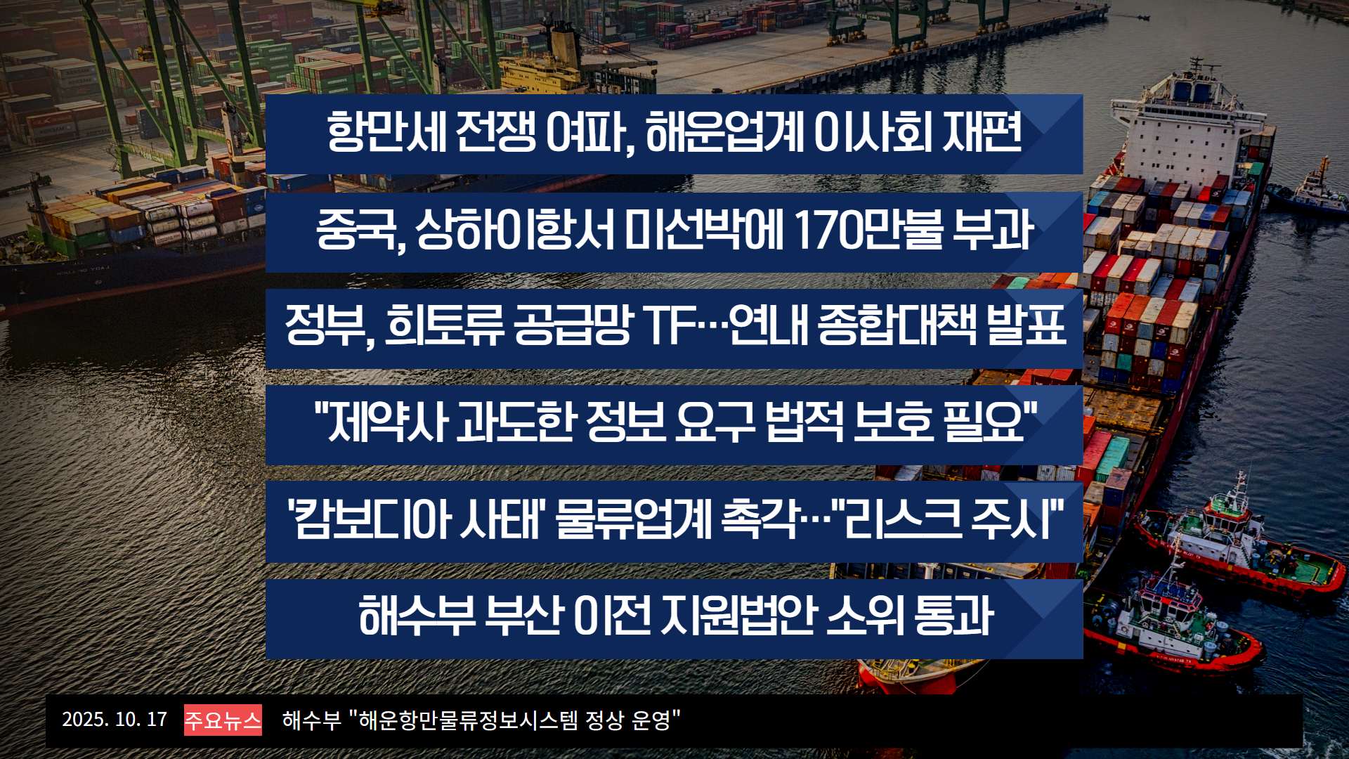 [로지스픽] 25년 10월 17일 주요 물류, 유통, 모빌리티 뉴스