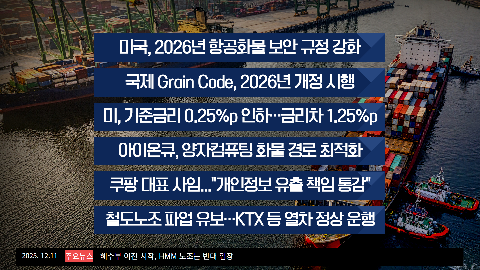 [로지스픽] 25년 12월 11일 주요 물류, 유통, 모빌리티 뉴스