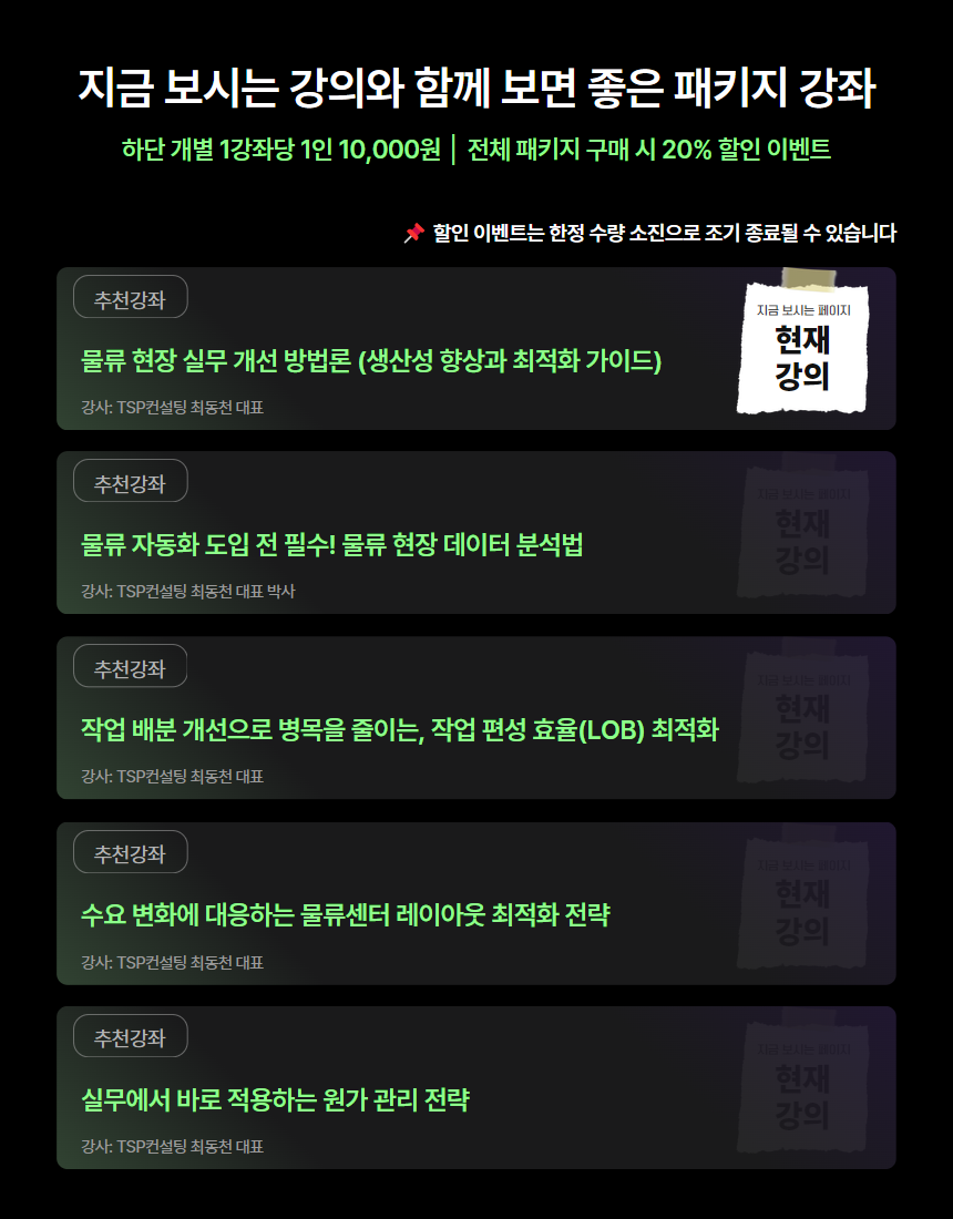 물류 현장 실무 개선 방법론: 생산성 향상과 최적화
